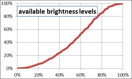 - At 20% brightness only 6% of the available levels have a lower value, which means that especially the darks have a serious shortage in expressing details.