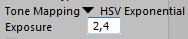 Another way to express Exposure is in extra diaphragm stops. One extra stop (value: 1) doubles the lens opening, and so the light into the camera. The opposite is: one stop back (or value: -1). The neutral value is: 0, no extra stops. This is the way exposure is used in Vue.