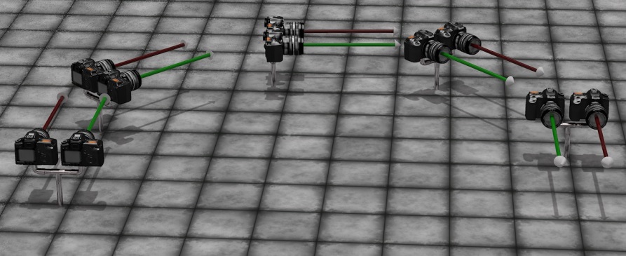 Although in real life dedicated stereo cameras can be obtained from the market, this is not the case for 3D software like Poser or Vue, so I’ve got to construct one myself. Actually I do need two identical cameras, a left-eye and a right-eye one, at some distance apart, fixed in a way they act like one.
