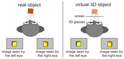 As a result, to make the left and right eye images overlap at the focal point, one image has to be shifted with respect to the other, for