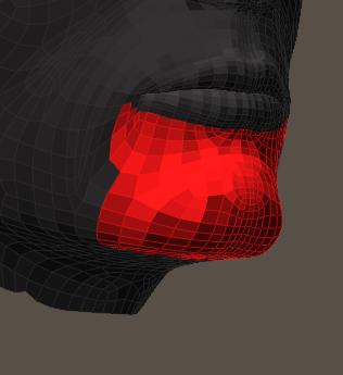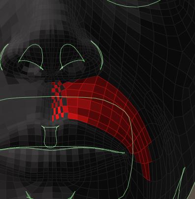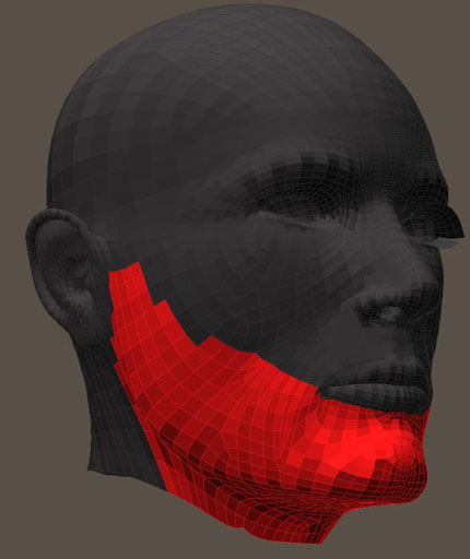 Note that on the mustache I deselected every other poly just below the nose, since these polys are very small. Populating hairs on all polys will make the mustache too dense in this area.