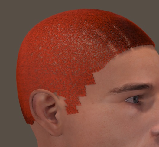 Not too bad, except for the jagged egdes at the sides but I’ll going to deal with that. The main trick then is to remove hairs by making them transparent, using an image (transparency map).
