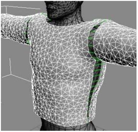 Since ClothFX ended up in 3DSMax (see Poser features in perspective) it’s the Hair&Cloth chapter from 3DSMax that presents clear examples. With a few splines the contours of a garment are defined, and the Garment Maker creates the irregular mesh from it. For a shirt in development: