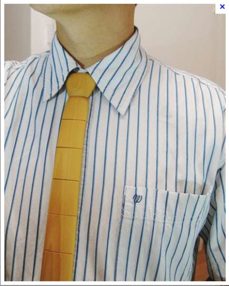 Thin shirt, Wooden tie.