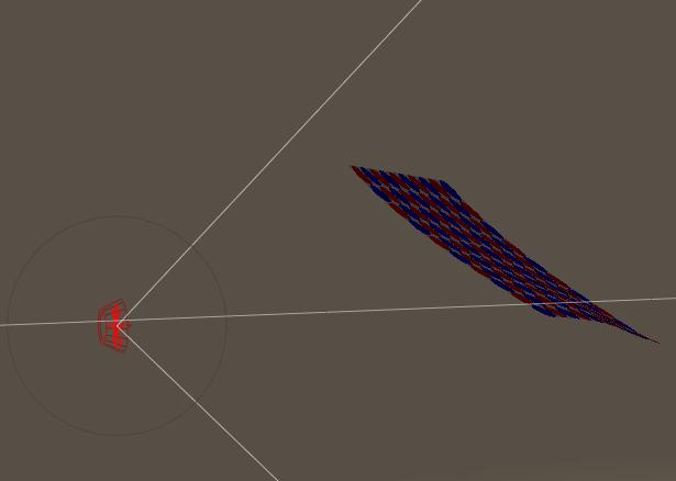 Then I put a Wind Force generator aside, and make it blow straight into the cloth. I give it some distance (twice the cloth size will do), leave the generator angle at 45°, and give it a serious range (4 to 5 times the cloth size will do). A Wind generator is quite a rude thing actually. It will produce the full force in an area determined by angle and range, and nothing outside it. No fall offs like spotlights. I leave the Amplitude at 1, the question is what that means.