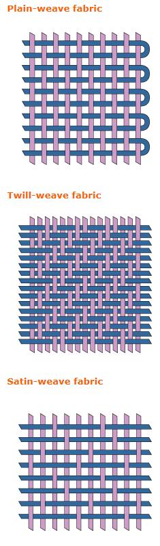 The weaves – some of them shown in the next page figure – are hard to make calculations for. Fabric parameters themselves are published and available on the net, but only for the heavy duty / high performance ones. Look for fabrics for game sailing or surfing or parachutes, and you’ll find plenty. They even use different weaves for the different sails on the same ship. Look for fabrics for normal clothing, and you’ll find none. Google for “stretching jeans” and you’ll get lots of tips how to make you pants fit better. Google “folding cotton” and you’ll get a course in fancy towel folding.