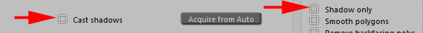- Render A with Cast Shadows unchecked, and render B with both Cast Shadows and Shadows Only checked.